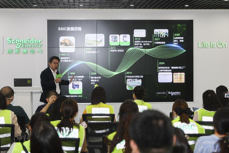 Bobby Mao, general manager of Schneider Shanghai Industrial Control Co., Ltd, speaks to reporters in Shanghai, east China, Sept. 1